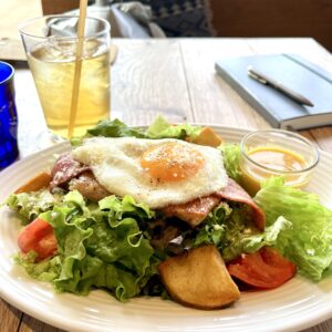 ごついサラダプレートがめちゃくちゃ好きなんですよ…ドレッシングは外だけの楽しみ。